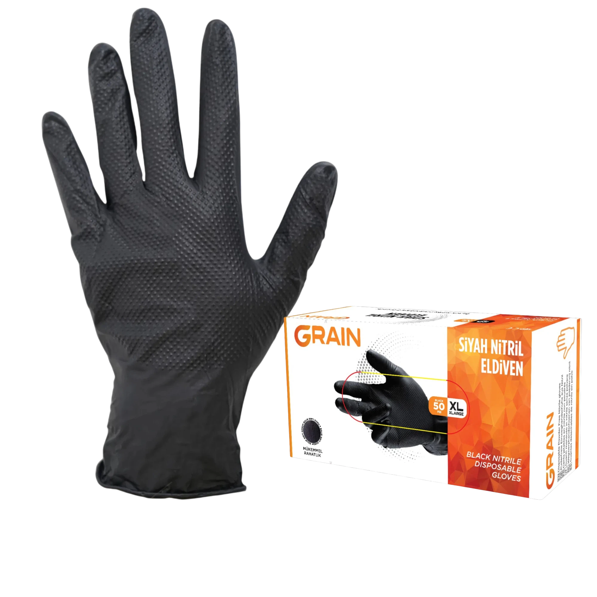 Grain Force Siyah Nitril Muayene Eldiveni Large (331.01.GF02)